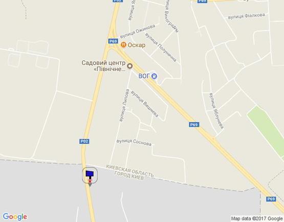 - Адрес: Траса "Київ-Іванків-Овруч", Р-02 км 18+ 650 право, м. Київ, пос. Микільський, 600 м. до завода SANDORA, 1 км до КПП, напрямок с. Нові Петрівці