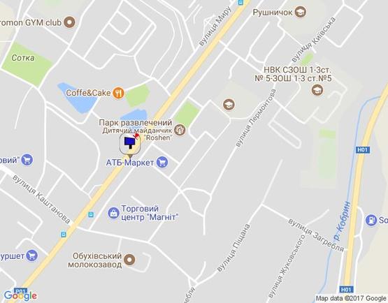 - Адрес: м. Обухів, вул.Київська, 148, навпроти ТЦ Магніт