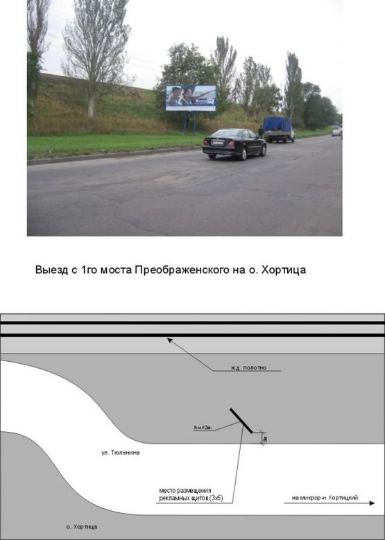 Схема рекламной плоскости по адресу выезд с 1го моста Преображенского на о.Хортицу