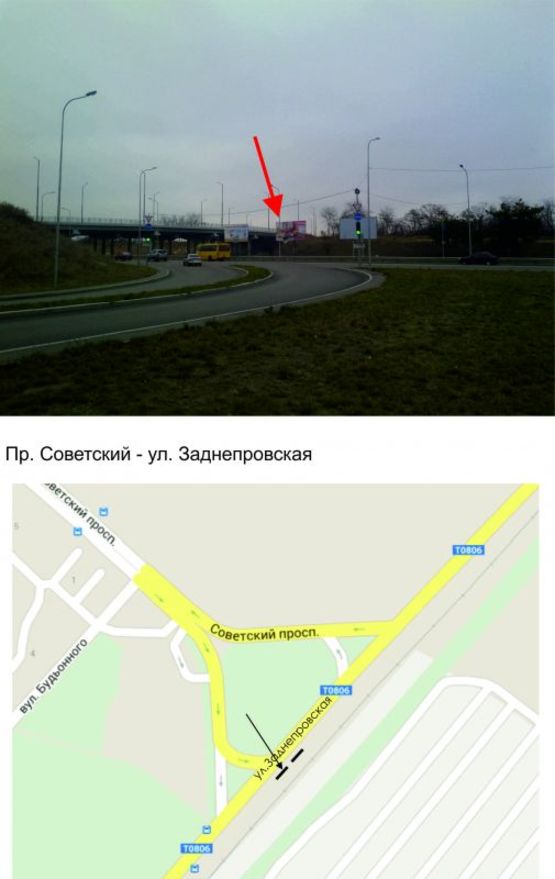 Фото рекламной плоскости по адресу пр. Преображенского - ул. Василя Сергиенка  (пр. Советский - ул. Заднепровская, №2)