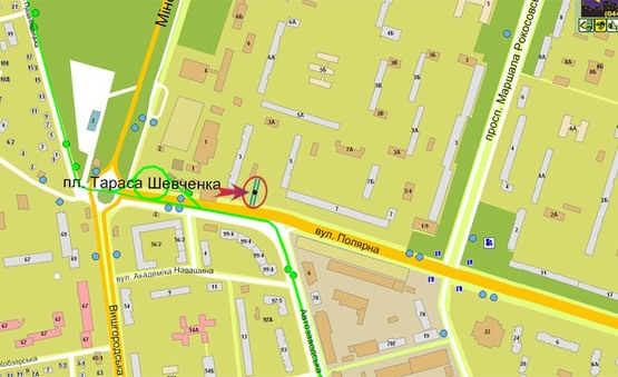 Схема рекламной плоскости по адресу пл.Шевченко/Полярная (В) на Оболонь