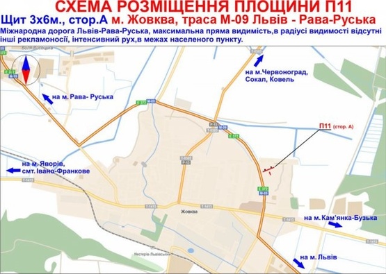 Схема рекламной плоскости по адресу на границу с Польшей, (г.Рава- Русская), на г.Червоноград + въезд в г.Жовква, трасса Львов- Рава-Русская (М-09)