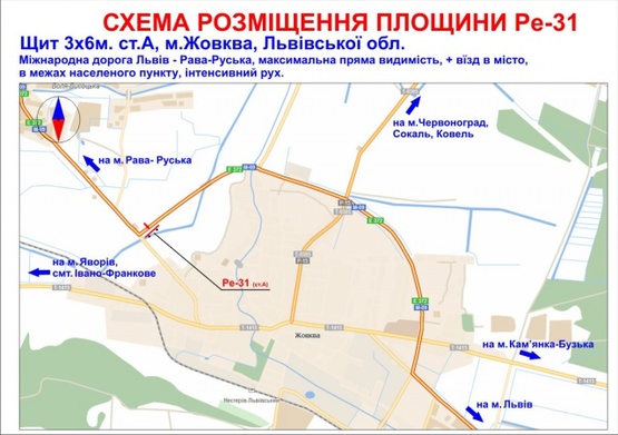 Схема рекламной плоскости по адресу с границы c Польшей (г.Рава-Русская) на г.Львов, г.Червоноград + въезд в г.Жовква, трасса Львов- Рава-Русская (М-09)
