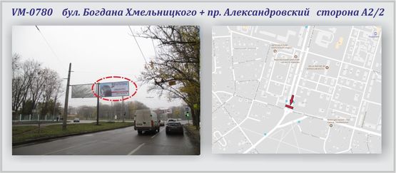 Схема рекламной плоскости по адресу Б.Хмельницкого бул. + пр. Александровский   (Б.Хмельницкого бул. + пр. Косиора)