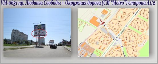 Схема рекламной плоскости по адресу Л.Свободы пр-т + Окружная дорога (ТРЦ "Караван") (островок)