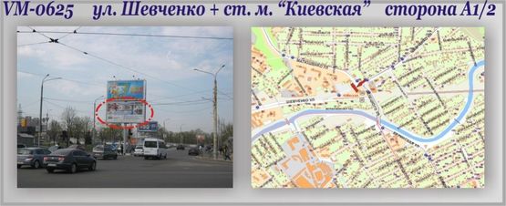 Схема рекламной плоскости по адресу Шевченко ул.+ ст.м. "Киевская" (островок)-ПРИЗМА