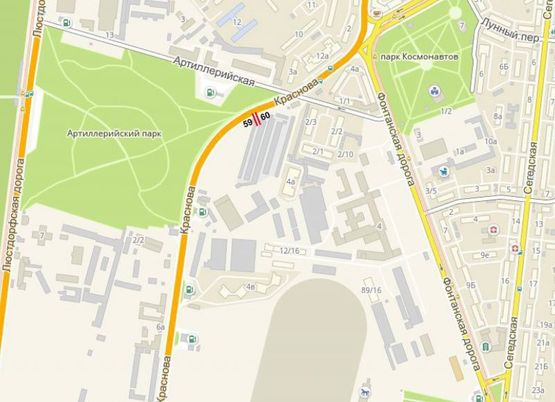 - Адрес: ул. Краснова - Артиллерийский парк (А), в центр