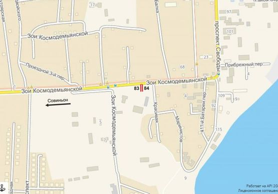 Фото рекламной плоскости по адресу Совиньон (ул. Зои Космодемьянской, 3), из города (В)