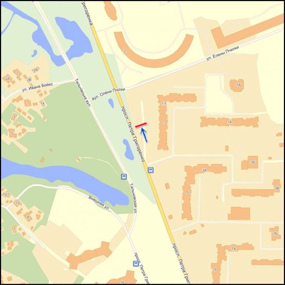 Оболонский пр. / Маршала Тимошенко, разделит. клумба по ходу к Петровке, (М) "Минская" А \ Есть 5800