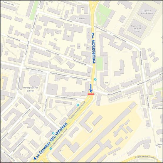 Украинки бул., 13 / Новогоспитальная ул. (бывш. Щорса пер.), на светофоре, в сторону ул. Крещатик А \ Есть 11200