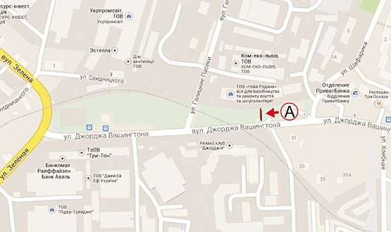 - Адрес: Вашингтона за поворотом з Зеленої К 1 А верх. ТЦ МЕТРО