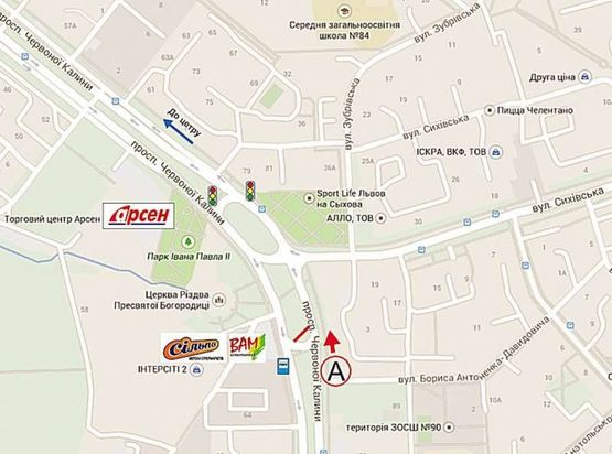 - Адрес: Червоної Калини - Давидовича, (до Арсену) супермаркет ВАМ-СІЛЬПО