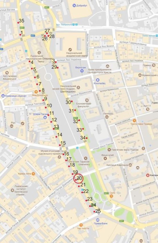 Митрополита Андрея ул., 10, разделитель, район Политеха, в сторону Святого Юра пл. А \ Нет 5000