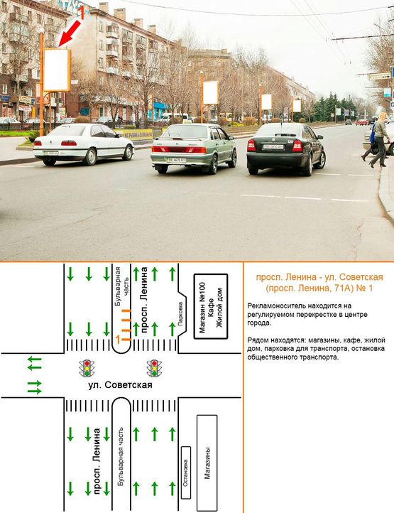 - Адрес: пр.Ленина-ул.Советская,71 на бульварной части