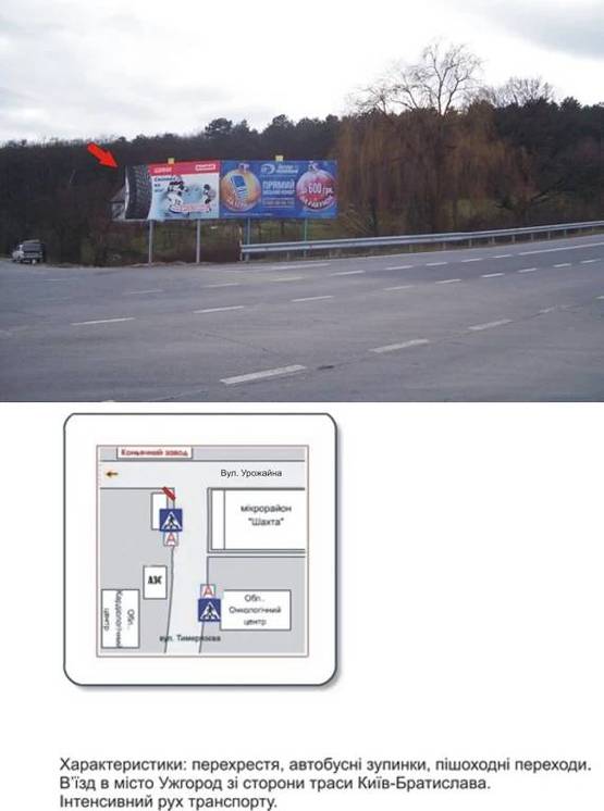 вул. Гагаріна (4 полоси руху,Центральний в`їзд в м.Ужгород, розв'язка автошляху Київ-Ужгород, яка веде до КПП "Ужгород"(Словаччина) і КПП "Чоп"(Угорщина). А \ Нет 2500