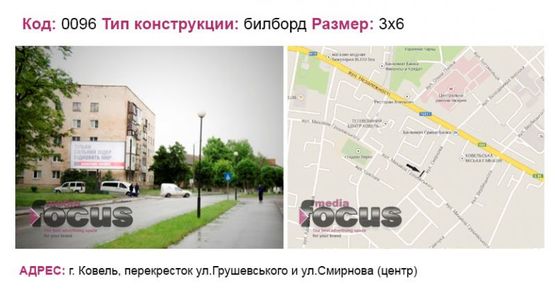 Заказать Билборд в г. Ковель по адресу вул.Грушевського- вул.Смірнова (центр) можно позвонив менеджерам по телефонам: +38(099) 395-28-27, или через форму онлайн заявки