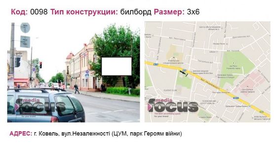 Заказать Билборд в г. Ковель по адресу вул.Незалежності (ЦУМ, парк Героям війни) можно позвонив менеджерам по телефонам: +38(099) 395-28-27, или через форму онлайн заявки