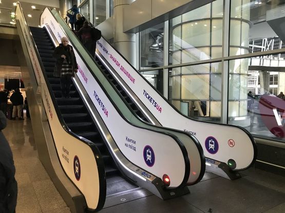 - Адрес: Терминал D. Брендирование эскалатора с 1 на 2 этаж, с 6-ти сторон