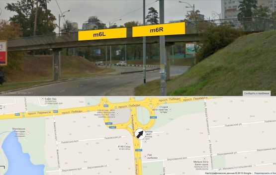 Заказать Реклама на мосту в г. Киев по адресу заезд с Кольцевой (от Вишневого) на пр. Победы в сторону центра, левый можно позвонив менеджерам по телефонам: +38(099) 395-28-27, или через форму онлайн заявки