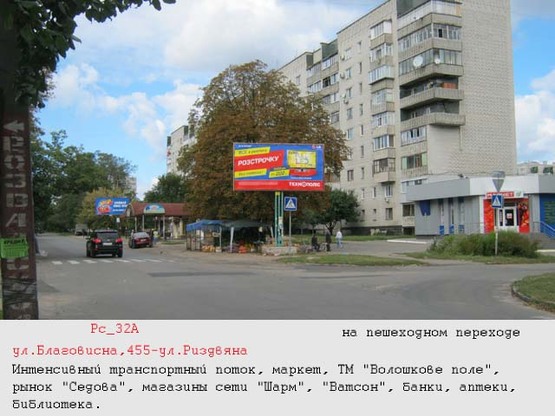 Билборд в г. Черкассы на (Рс 32А) ул.Благовисна, 455-ул.Риздвяна рынок "Седова", интенсивный трансп.поток, пеш.переход