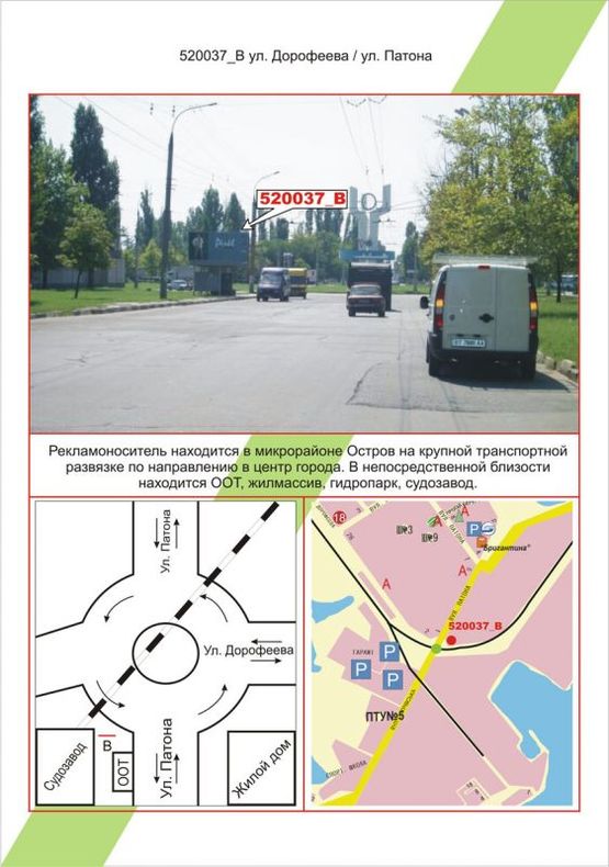 Схема рекламной плоскости по адресу Острів, вул. Дорофеєва / вул. Патона,