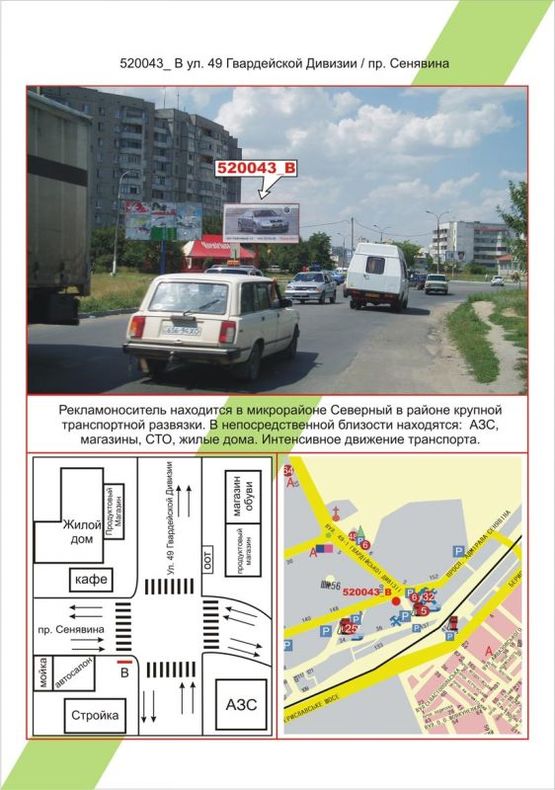 Схема рекламной плоскости по адресу Таврійський, вул. 49 Гвардійської Дивізії / пр. Сенявіна,