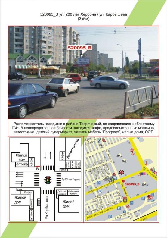 Схема рекламной плоскости по адресу Таврійський, пр. 200 років Херсону / вул. Карбишева (кафе),