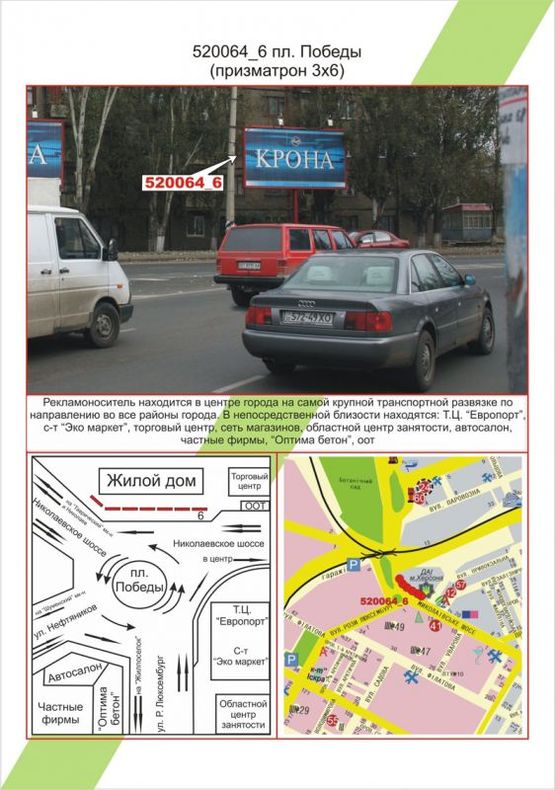Схема рекламной плоскости по адресу Центр, пл. Перемоги 6,
