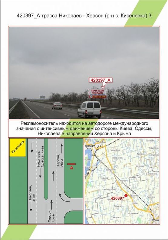 Билборд в г. Трассы на траса Миколаїв – Херсон (р-н с.Киселівка) 3, ,