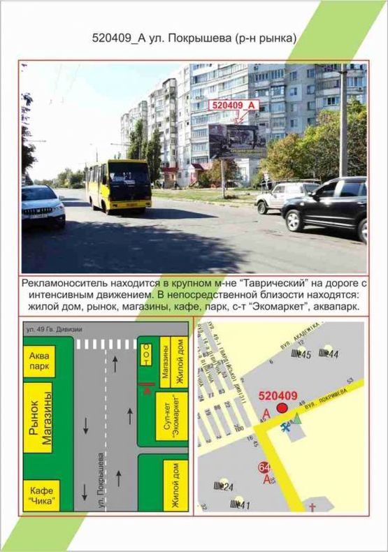 Схема рекламной плоскости по адресу Таврійський, вул. Покришева (р-н ринку),