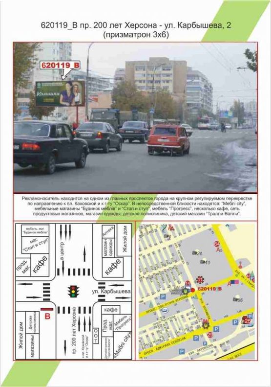 Фото рекламной плоскости по адресу Таврійський, пр. 200 років Херсону / вул. Карбишева 2,