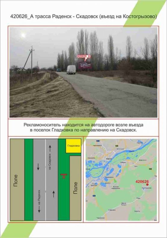 Билборд в г. Трассы на траса Раденськ - Скадовськ (в`їзд на Костогризово), ,