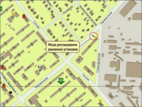 Схема рекламной плоскости по адресу ул.Украинская, ул.Семафорная