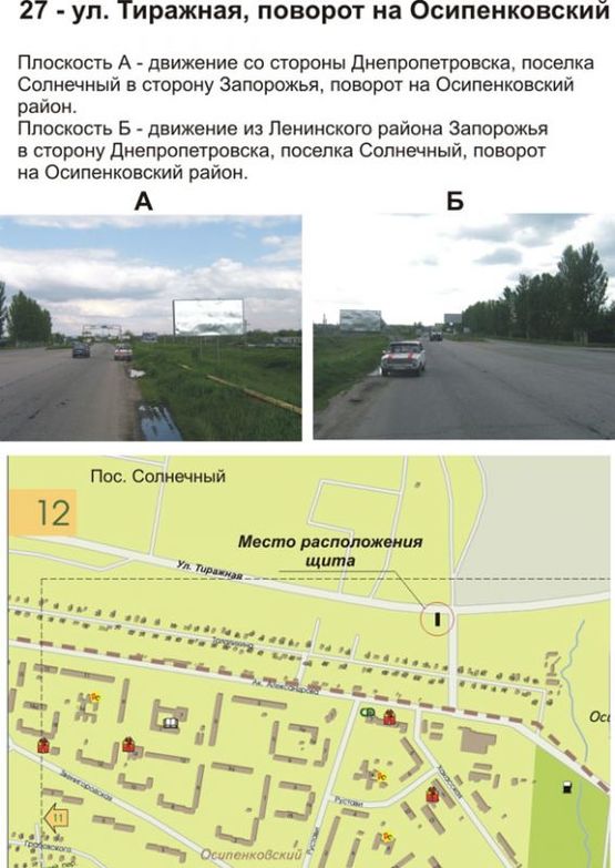 Билборд в г. Запорожье на ул. Тиражная, поворот на Осипенковский