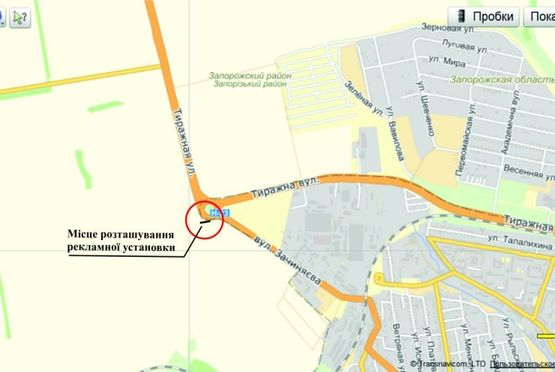 Схема рекламной плоскости по адресу Дніпро-Запоріжжя, коло, вїзд в місто