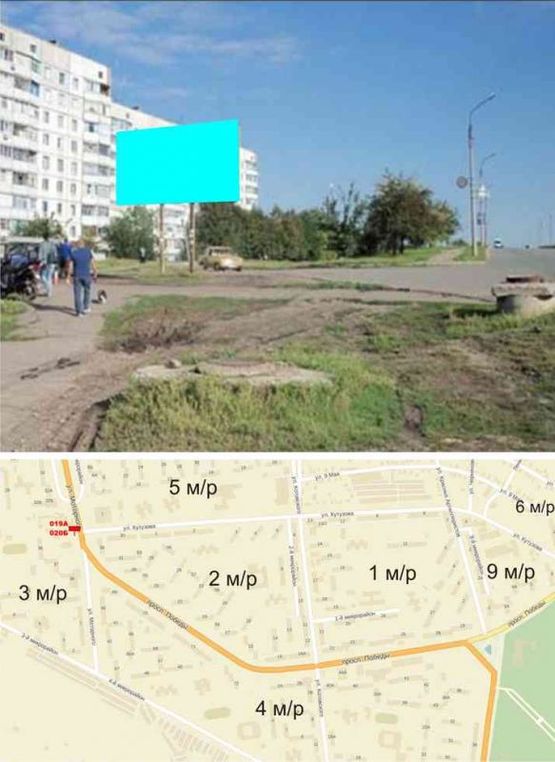 Схема рекламной плоскости по адресу Торговый рынок 2,  пр. Победы, 3