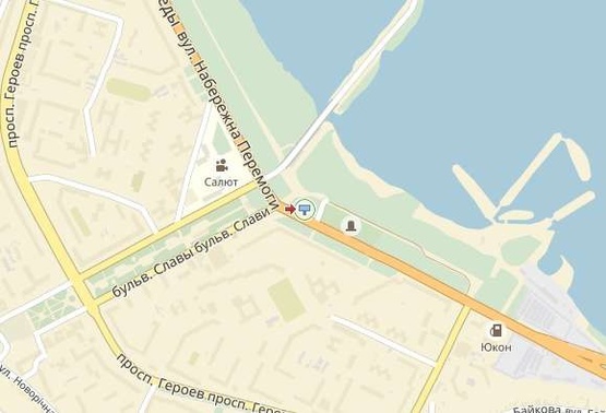 Схема рекламной плоскости по адресу Набережная Победы ул. 130, возле кинотетра Салют, из центра