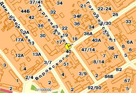 Схема рекламной плоскости по адресу Воровского ул.40, возле ул.Тургеневская, в сторону пл.Победы, формат 3х2,7