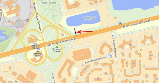 - Адрес: Бажана пр-т 400 м до пр-та Григоренко, в центр, левая