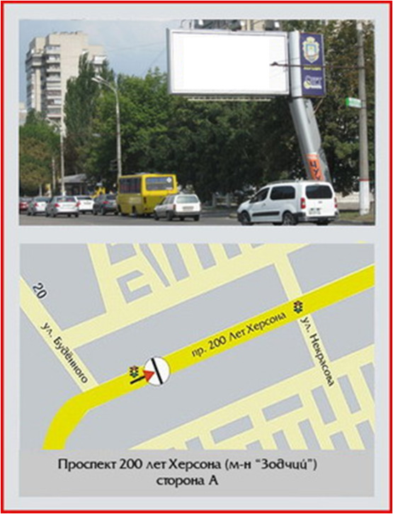 Заказать Билборд в г. Херсон по адресу 200-річчя Херсона,2 пр.(м-н "Зодчий")/вул.Будьоного можно позвонив менеджерам по телефонам: +38(099) 395-28-27, или через форму онлайн заявки