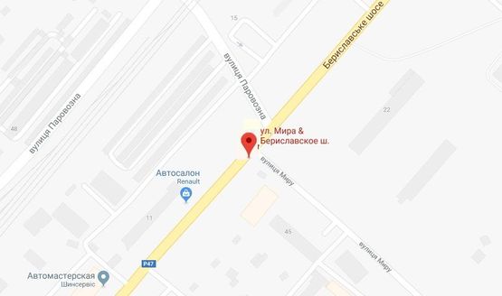 Схема рекламной плоскости по адресу Бериславське шосе/Мира вул.