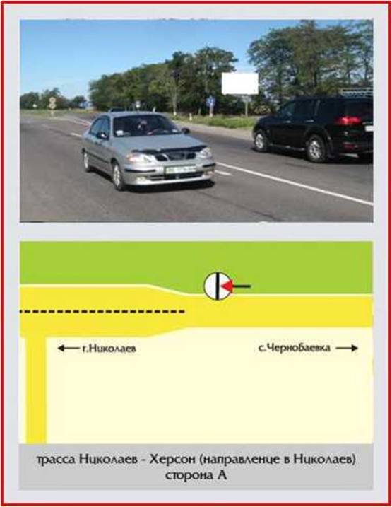 Схема рекламной плоскости по адресу с. Чорнобаївка/Миколаївське шосе/поворот на об'їзну