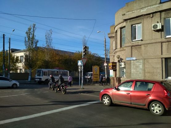 Пиллар в г. Бердянск на Західний пр. / Волі вул. (підйом на Західний пр., по ходу руху транспорта по Волі вул., поворот на гору)
