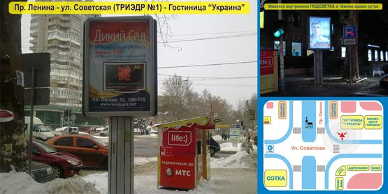 - Адрес: Пр. Ленина, 73 - ул. Советская (возле Гостиницы "Украина") ТРИЭДР (тройной ситилайт) - ПЕРВЫЙ - ВРАЩАЕТСЯ!