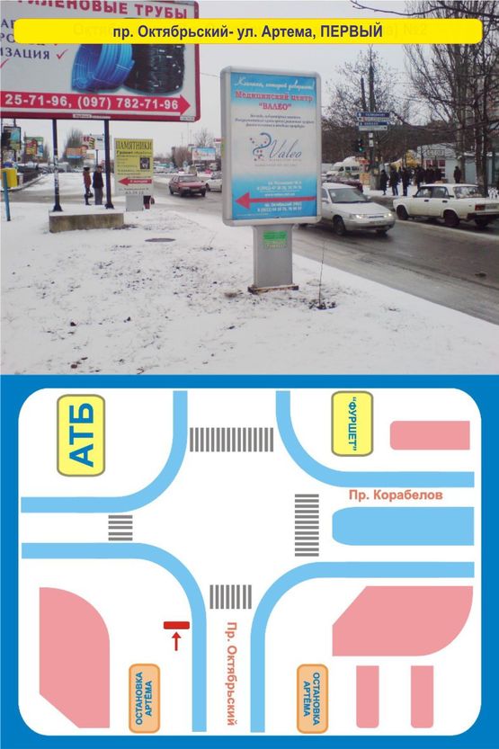 Ситилайт в г. Николаев на Пр. Октябрьский, 338 - остановка ул. Артёма (ОКТЯБРЬСКОЕ) - ПЕРВЫЙ