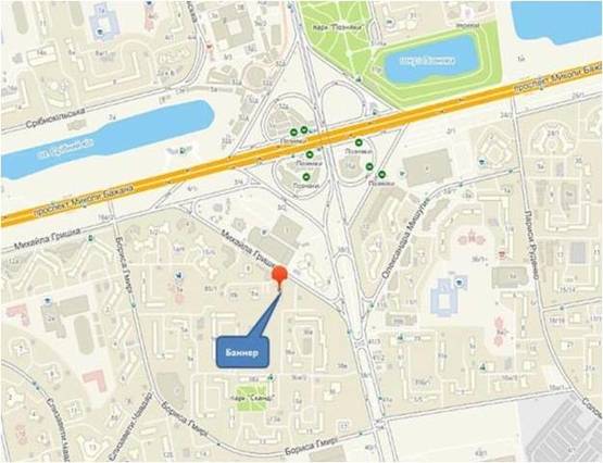 - Адрес: п-т. Н.Бажана (ул. Н.Гришка,10)