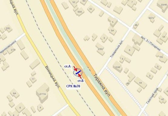 Схема рекламной плоскости по адресу вул.Тиражна -АЗС  (вул.Товариська), ст.Б
