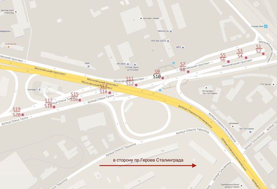 Схема рекламной плоскости по адресу Московский пр-т, на разделительной полосе в сторону Героев Сталинграда