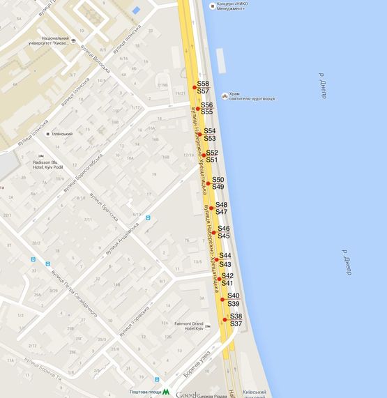 Заказать Ситилайт в г. Киев по адресу Подольский р-н, ул.Набережно-Крещатицкая, разделитель напротив д.13-15-17(в сторону метро Почтовая площадь) можно позвонив менеджерам по телефонам: +38(099) 395-28-27, или через форму онлайн заявки