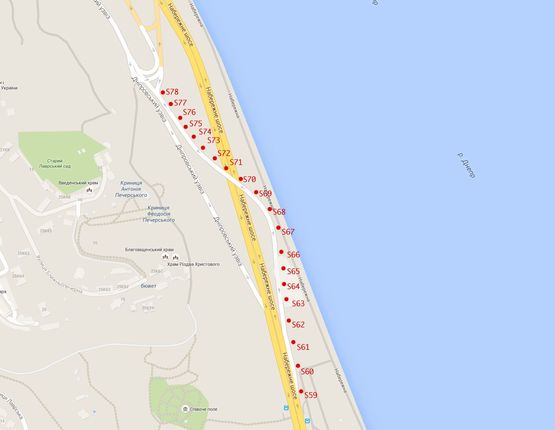 - Адрес: Набережное шоссе/заезд на Днепровский спуск